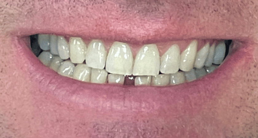 Composite bonding to close a diastema space gap.